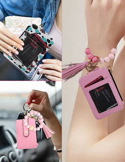 Portofelul are o brățară din mărgele, astfel încât îl poți purta comod la încheietură. Îți lasă mâinile libere și adaugă un plus de stil.